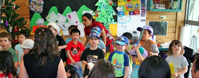 This year E's X-mas celebrations started in early December with a "concert" at his day care center. The children performed first (I was impressed with the number of songs the 3 and 4 year olds managed to memorize for the occasion),